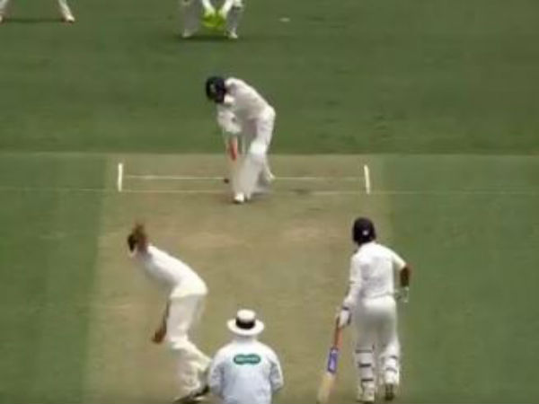 இந்த பயிற்சிப் போட்டியில் 19 வயதான ஆஸ்திரேலிய வீரர் ஆரோன் ஹார்டி விராட் கோலிக்கு பந்துவீசினார். கோலி அப்போது 64 ரன்கள் அடித்து ஆடி வந்தார். ஹார்டி வீசிய ஒரு பந்தை நேராக அடித்தார் கோலி.