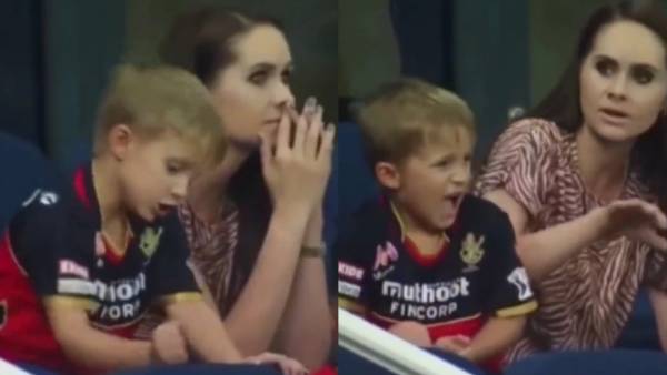 ஏபி டி வில்லியர்ஸ் அவுட் ஆனவுடன் கேமரா அவரது குடும்பத்தினர் பக்கம் திரும்ப, அப்போது ஏபி டி வில்லியர்ஸ் மகன் செய்த வீடியோ தான் இப்போது இணையத்தில் வைரலாகி வருகிறது. தனது தந்தை அவுட் ஆன விரக்தியில் சேரில் ஓங்கி ஒரு அடி விட்டார் அவரது மகன். ஆனால் எதிர்பார்த்ததைவிட அது அதிகமாக வலிக்கவே அடுத்த நொடியே ஏன்தான் இதை செஞ்சோம் என்ற ரேஞ்சுக்கு அவரது முகம் மாறுகிறது. அவரது இந்த ரியாக்ஷனை கண்டு அருகில் இருந்த ஏபி டி வில்லியர்ஸின் மனைவி டேனியல் சற்று பதறிவிட்டார். சில நொடிகளில் பல ரியாக்ஷன்களை வெளிப்படுத்திய ஏபி டி-இன் மகனின் வீடியோ தான் இப்போது ட்விட்டர் டிரெண்டிங்.