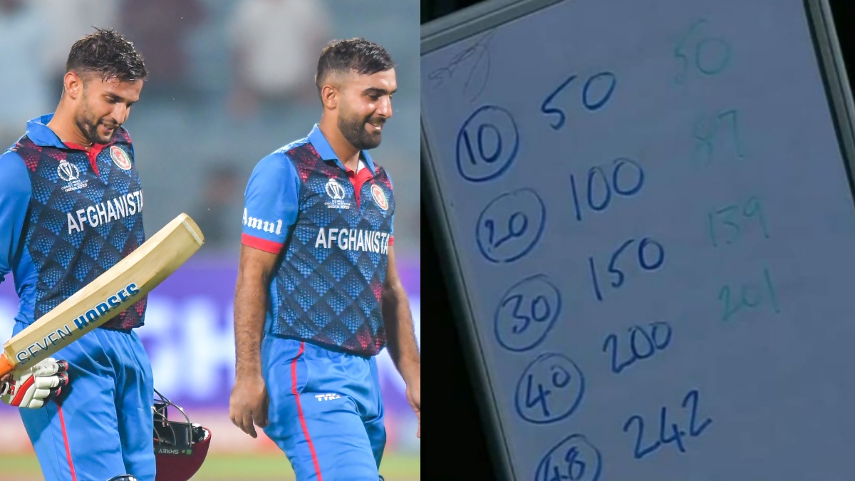 அதில் 10 ஓவரில் 50 ரன்கள், 20 ஓவருக்குள் 100 ரன்களும், 30 ஓவருக்குள் 150 ரன்களும் 40 ஓவருக்குள் 200 ரன்கள் 48 ஓவருக்குள் 242 ரன்களும் அடிக்க வேண்டும் என அவர் வெள்ளை நிற போர்டில் எழுதி வைத்திருந்தார். அதை பார்த்து விளையாடிய ஆப்கானிஸ்தான் வீரர்கள் சரியாக அந்த இலக்கை நகர்த்தி சென்றனர். இதன் மூலம் ஆப்கானிஸ்தான் அணி 45.2 வது ஓவரிலேயே 242 ரன்கள் என்று இலக்கை எட்டியது.