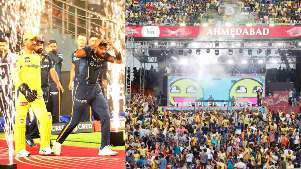 இந்த நிலையில் டாஸ் வென்ற சென்னை அணி கேப்டன் எம்எஸ் தோனி பந்துவீச்சை தேர்வு செய்தார். இதன்பின்னர் தேசிய கீதம் பாடப்பட்டு ஆட்டம் தொடங்கியது. இந்த ஆட்டம் தொடங்கிய பின் எங்கு திரும்பினாலும் மஞ்சள் ஜெர்சி அணிந்த ரசிகர்கள் மட்டுமே உள்ளனர். அகமதாபாத் நரேந்திர மோடி மைதானத்தில் ஐபிஎல் இறுதிப்போட்டிக்கான ஒரு லட்சம் டிக்கெட்டுகளும் விற்றுத் தீர்ந்தன.