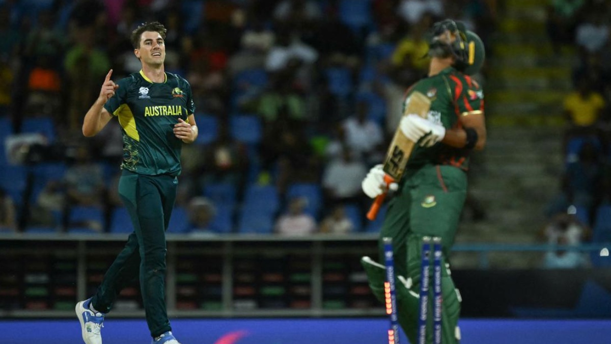 ஆன்டிகுவா : வங்கதேசம் அணிக்கு எதிரான சூப்பர் 8 போட்டியில் ஆஸ்திரேலியா அணி வீரர் பேட் கம்மின்ஸ் ஹாட்ரிக் விக்கெட்டை வீழ்த்தி புதிய சாதனையை படைத்துள்ளார். ஆன்டிகுவா மைதானத்தில் ஆஸ்திரேலியா - வங்கதேசம் இடையிலான சூப்பர் 8 போட்டி நடைபெற்றது. இந்த போட்டியில் டாஸ் வென்ற ஆஸ்திரேலியா அணி கேப்டன் மிட்சல் மார்ஷ் பவுலிங்கை தேர்வு செய்தார்.