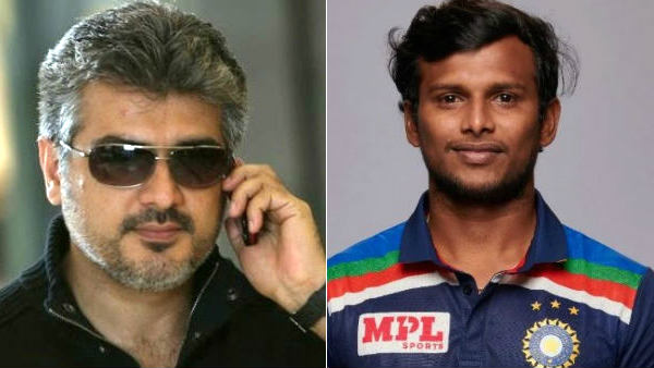 இந்திய அணியில் கலக்கி வரும் நடராஜனை வாழ்த்துகிறோம் என்று அஜித் ரசிகர்கள் பெரிய பெரிய கட் அவுட்களை காட்டி உள்ளனர். ஆஸ்திரேலியாவில் இருக்கும் அஜித் ரசிகர்கள் இந்த காரியத்தை செய்துள்ளனர். இதை தொடர்ந்து டிவிட்டரில் இருக்கும் அஜித் ரசிகர்கள் #ThalaFansWishesNATARAJAN என்ற டேக்கை டிரெண்ட் செய்தனர்.