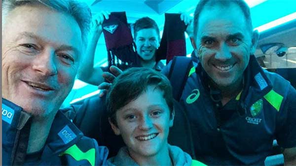 ஆஸ்திரேலிய ஜாம்பவான் ஸ்டீவ் வாஹ் மற்றும் ஆஸ்திரேலிய அணி பயிற்சியாளர் ஜஸ்டின் லாங்கர் உடன் அமர்ந்து பயணித்தான். ஸ்டீவ் வாஹ் அப்போது புகைப்படம் எடுத்து தன் இன்ஸ்டாகிராம் பக்கத்தில் பகிர்ந்துள்ளார்.