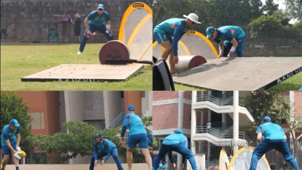 இந்தூர் மைதானத்தில் சிகப்பு மண் இருப்பதால் தொடக்கத்தில் வேகப்பந்துவீச்சுக்கு உதவும். அதுவும் மிட்செல் ஸ்டார் மற்றும் கேமரூன் கிரீன் ஆகியோரின் ஓவரில் நன்கு பவுன்ஸாகி கேட்ச்-கள் அதிகம் வரலாம். இதனை சமாளிப்பதற்காக பிட்ச் ரோலர்கள், இரும்பு அட்டைகள், ரக்ஃபி பந்துகளை பயன்படுத்தி விநோத முறையில் பயிற்சி பெற்று வருகின்றனர்.