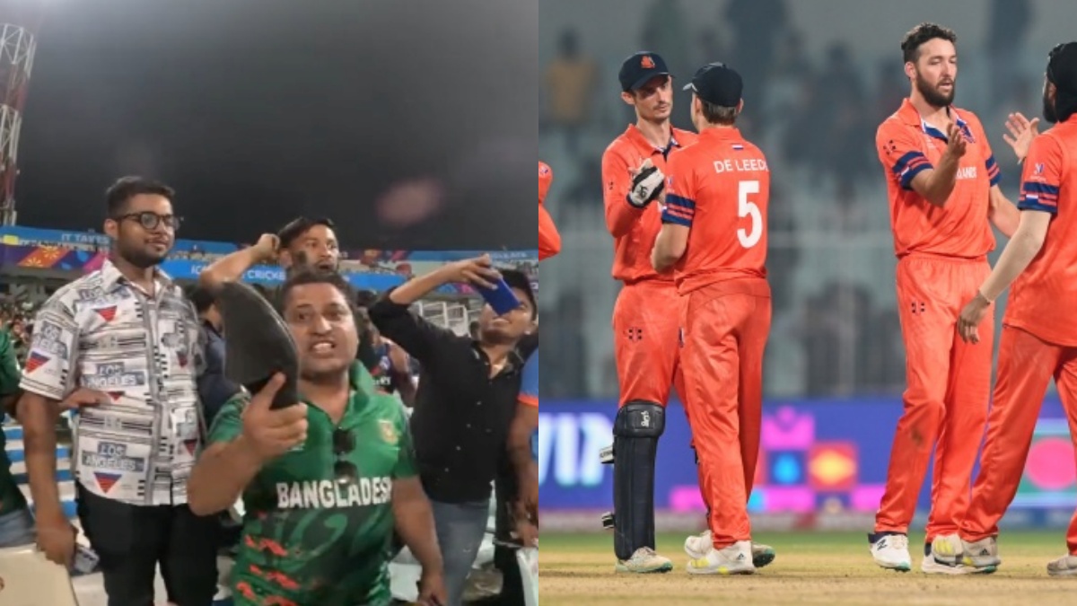 இதன் மூலம் வங்கதேச அணி தற்போது புள்ளி பட்டியலில் ஒன்பதாவது இடத்தை இருக்கிறது. நெதர்லாந்துக்கு எதிராக 87 ரன்கள் வித்தியாசத்தில் வங்கதேச அணி தோல்வியை தழுவியது. தங்கள் உலகக்கோப்பை வரலாற்றிலேயே மிக மோசமான தோல்வி ஆகும் என அந்த அணி கேப்டன் ஷகிபுல் ஹாசன் விமர்சித்திருக்கிறார்.இந்த நிலையில் இந்த போட்டியை காண வந்த வங்கதேச ரசிகர் ஒருவர் நெதர்லாந்து அணிக்கு எதிராக தங்களது வீரர்கள் தோல்வியை தழுவியதால் ஆத்திரமடைந்து செருப்பை எடுத்துக்கொண்டு தன்னைத்தானே அடித்துக் கொண்டார்.