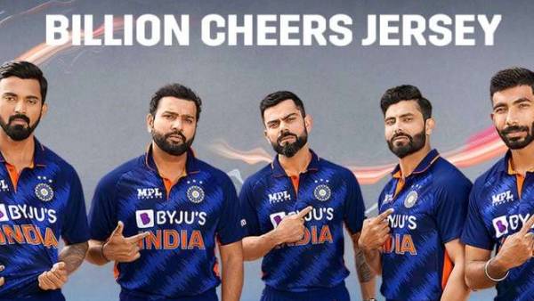 இன்று பிசிசிஐ மூலம் இன்று ஜெர்சி வெளியிடப்பட்டது. இந்திய அணியின் ஸ்பான்சரான பைஜூஸ் மற்றும் கிட் ஸ்பான்சரான எம்பிஎல் உள்ளிட்ட நிறுவனங்களின் லோகோ இதில் இடம்பெற்றுள்ளது. இந்த முறை லோகோ அளவு கொஞ்சம் குறைக்கப்பட்டுள்ளது. இந்த ஜெர்சிக்கு இணையத்தில் கலவையான விமர்சனங்கள் வைக்கப்பட்டு வருகின்றன.