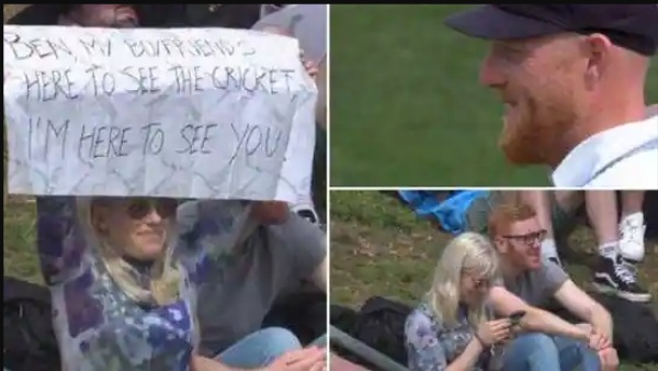 சிறிது நேரம் மைதானத்தில் இருந்த திரைகளில் அந்த பெண்ணின் பதாகை தான் காட்டப்பட்டு வந்தது. அதனை பார்த்த பென் ஸ்டோக்ஸ் வெட்கத்தில் சிரிக்க, சக வீரர்களும் கிண்டல் செய்து சிரித்தனர். இதுகுறித்த வீடியோ இணையத்தில் வேகமாக பரவி வருகிறது. காதலனை அருகில் வைத்துக்கொண்டு, ஸ்டோக்ஸை பார்த்து வந்த அந்த ரசிகை இணையத்தில் ட்ரெண்டாகி வருகிறார்.
