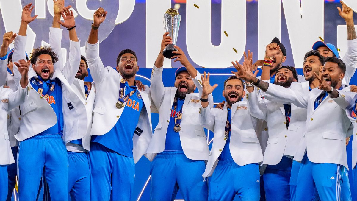 2025 சாம்பியன்ஸ் தொடரில் நியூசிலாந்து அணி 251 ரன்கள் எடுத்தது. அடுத்து ஆடிய இந்திய அணி 49 ஓவர்களில் 252 ரன்கள் என்ற இலக்கை எட்டி 4 விக்கெட் வித்தியாசத்தில் வெற்றி பெற்றது. இந்த வெற்றிக்கு பிறகு கோப்பை வழங்கும் நிகழ்வுக்கு முன்னதாக இந்திய வீரர்கள் அனைவரும் வரிசையில் அழைக்கப்பட்டனர்.