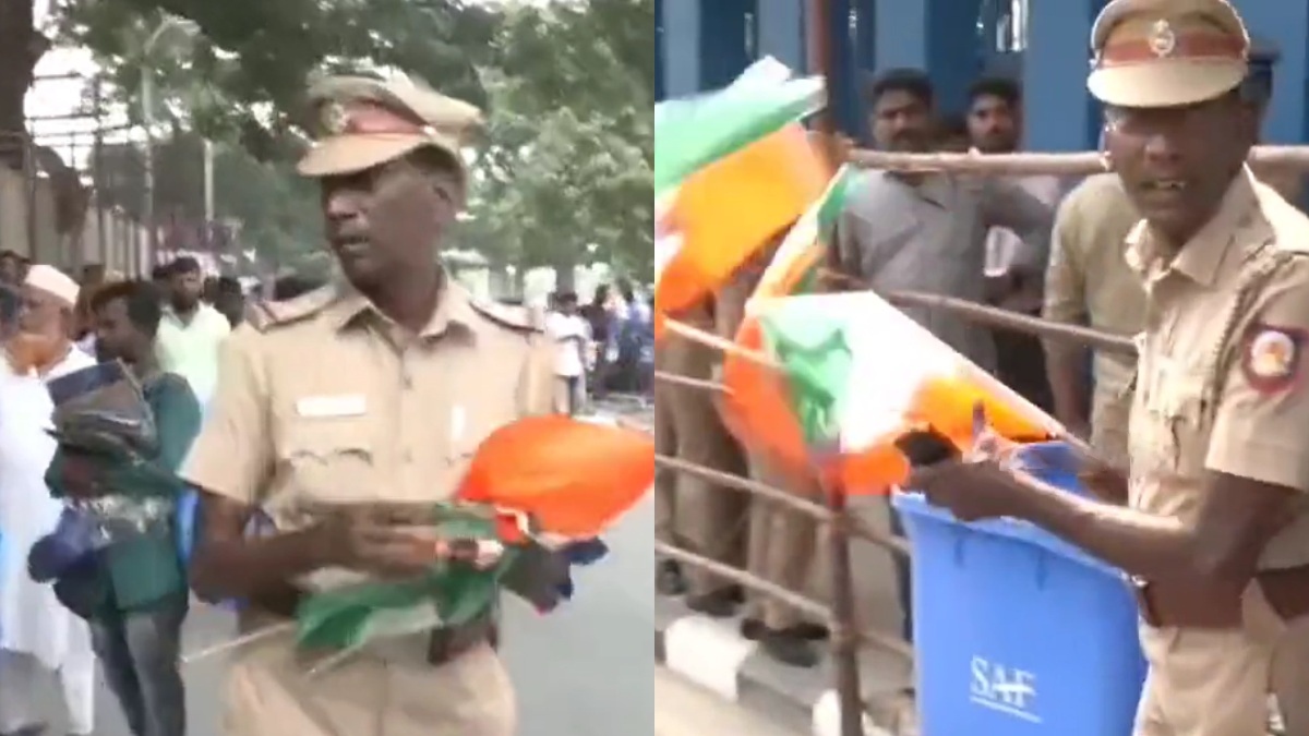 இது அங்கு இருந்தவர்களை அதிர்ச்சி அடைய செய்தது. இந்த வீடியோ தற்போது சமூக வலைத்தளத்தில் வேகமாக பரவி வருகிறது. இந்திய கொடியை வாங்க முயற்சித்த போலீசார் மீது நடவடிக்கை எடுக்க வேண்டும் என ரசிகர்கள் வலியுறுத்தினர். இந்த நிலையில் இந்திய கொடியை மைதானத்தில் எடுத்துச் செல்லக்கூடாது என்று கூறிய போலீசார் மீது சென்னை மாநகர காவல் துறை ஆணையர் நடவடிக்கை எடுத்திருக்கிறார்.
