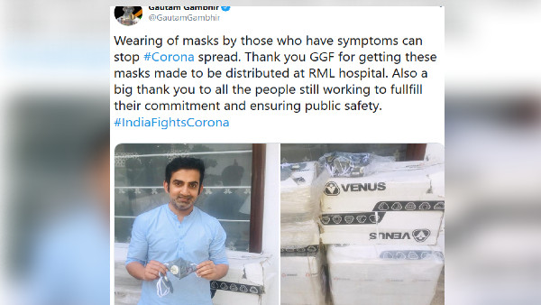 முன்னாள் வீரரும், பாஜக எம்பியுமான கெளதம் கம்பீர், கொரோனாவைரஸ் விழிப்புணர்வில் ஈடுபட்டுள்ளார். மாஸ்க் அணிவதன் மூலம் கொரோனாவைரஸ் பரவலைத் தடுக்க முடியும் என்று கூறி அவர் டிவீட் பண்ணியுள்ளார். மேலும் ஆர்எம்எல் மருத்துவமனைக்கு தருவதற்காக தன்னிடம் வழங்கப்பட்ட மாஸ்க்குகளுடன் அவர் புகைப்படமும் எடுத்துக் கொண்டுள்ளார்.