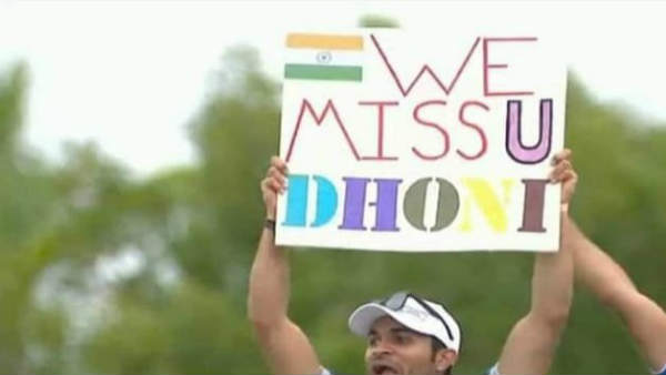 தோனி இந்த தொடரில் இல்லை என்றாலும் இந்திய அணி கலந்து கொள்ளும் போட்டிகளில் தவறாமல் அவரது ரசிகர்கள் வருகையை பதிவு செய்து விடுகின்றனர். இந்திய அணியை உற்சாகப்படுத்தும் அவர்கள், தோனியையும் ஞாபகப்படுத்தி வருகின்றனர்.