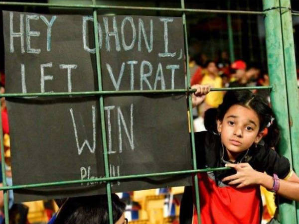 இப்போட்டியில் பெங்களூரு அணியை சேர்ந்த ஒரு சிறுமி சென்னை அணியின் கேப்டன் தோனிக்கு வித்தியாசமான முறையில் தனது வேண்டுகோளை விடுத்திருக்கிறார். அவரின் இந்த செயல் தற்போது இணையத்தில் வைரலாகி வருகிறது.