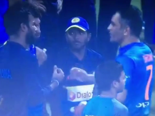 இலங்கை வீரர் பெரேரா மைக்கில் பேசும் போது இந்த சம்பவமும் வீடியோவாக பதிவாகி உள்ளது. அதில் டோணி எந்த இடத்தில் கால் வைத்து எப்போது பேட்டை தூக்க வேண்டும் என்பது போன்ற செய்து காண்பிக்கிறார். இலங்கை வீரர்கள் இதை அமைதியாக கேட்டு கொண்டு இருந்தனர். இதை இந்திய ரசிகர்கள் ஷேர் செய்து வருகின்றனர்.