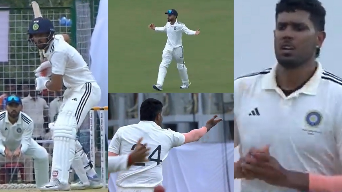 அது நேராக 2வது ஸ்லிப் திசையில் நின்ற அதர்வா தய்டேவிடன் கைகளில் சென்று விழுந்தது. இதனால் கேப்டன் ருதுராஜ் கெய்க்வாட் ஏமாற்றத்துடன் பெவிலியன் நோக்கி நடந்து சென்றார். அதனை பார்த்த இந்தியா டி அணி வீரர் ஹர்சித் ராணா, தனது ஸ்டைலில் ஃபிளையிங் கிஸ் கொடுத்து கொண்டாட்டத்தில் ஈடுபட்டார். இந்த வீடியோ சோசியல் மீடியாவில் ட்ரெண்டாகியது.