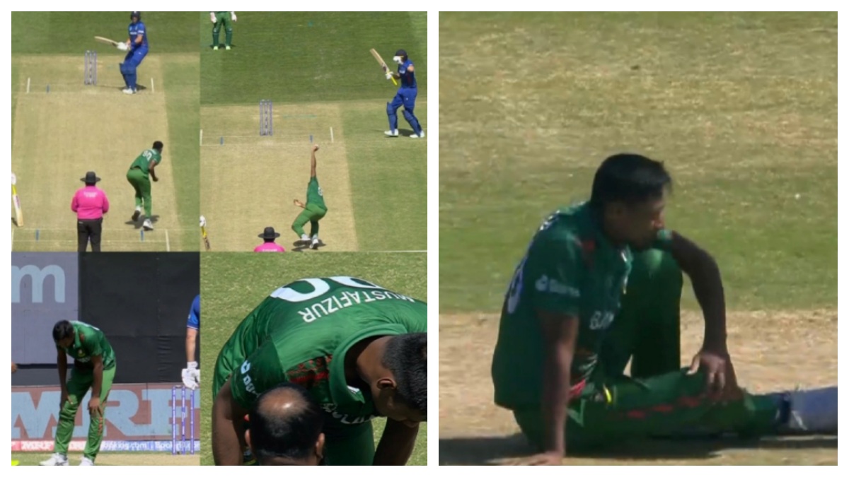 அந்தப் போட்டியில் முஸ்தாபிசூர் ரஹ்மான் பந்து வீச வந்த போது இங்கிலாந்து அணியின் மூத்த வீரர் ஜோ ரூட் திடீரென விலகினார். அதனால், முஸ்தாபிசூர் ரஹ்மான் தடுமாறி கீழே விழுந்து மோசமாக வலியில் துடித்தார். இதனால் போட்டியில் சிறிது நேரம் பரபரப்பு ஏற்பட்டது. என்ன நடந்தது?
