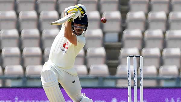 இங்கிலாந்து அணி இரண்டாம் இன்னிங்க்ஸ் ஆடத் துவங்கியது. மூன்றாம் நாள் இறுதியில் விக்கெட் இழப்பின்றி இருந்தது. இந்த நிலையில், நான்காம் நாள் துவக்கத்தில் ரன் சேர்த்த பர்ன்ஸ் 42 ரன்களில் ஆட்டமிழந்தார். சிப்லி மற்றும் டென்லி தொடர்ந்து பேட்டிங் செய்து வந்தனர்.