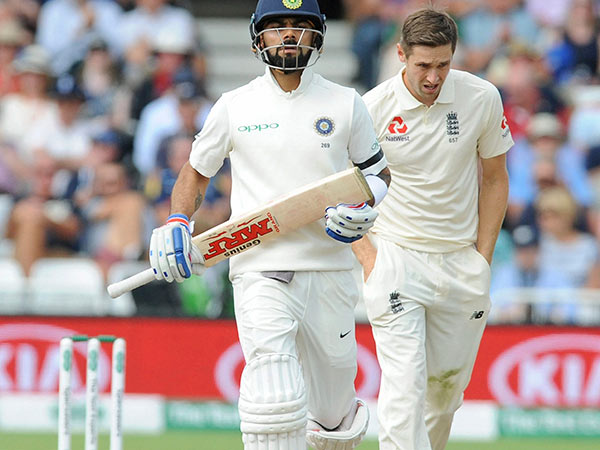 முதல் நாள் உணவு இடைவேளையின்போது இந்தியா 3 விக்கெட் இழப்புக்கு 82 ரன்கள் எடுத்துள்ளது. கேப்டன் விராட் கோஹ்லி 4 ரன்களுடன் களத்தில் உள்ளார். இங்கிலாந்தின் கிறிஸ் வோல்க்ஸ் மூன்று விக்கெட்களையும் வீழ்த்தினார்.