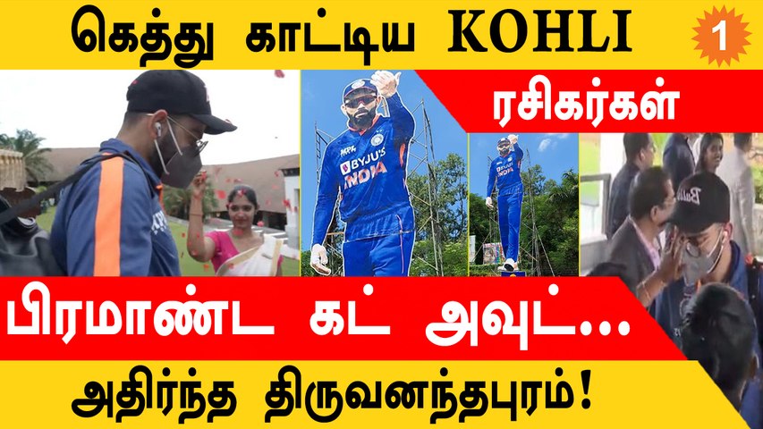 விராட் கோலிக்கு கேரளாவில் ரசிகர்கள் அதிகம் என்பது சொல்லித் தெரிய வேண்டியது இல்லை. மேலும் மூன்று ஆண்டுகளுக்குப் பிறகு இந்திய அணி கேரளா வந்துள்ளதால் இம்முறை பல ஸ்பெஷல் ஏற்பாடுகளை ரசிகர்கள் செய்துள்ளனர். குறிப்பாக சினிமா நட்சத்திரங்களுக்கு மட்டும்தான் கட் அவுட் வைக்கப்படும். இந்த நிலையில் போட்டி நடைபெறும் கிரீன் பீல்ட் மைதானத்திற்கு வெளியே ரசிகர்கள் விராட் கோலி உள்ளிட்ட வீரர்களுக்கு கட்டவுட் வைத்துள்ளனர்.