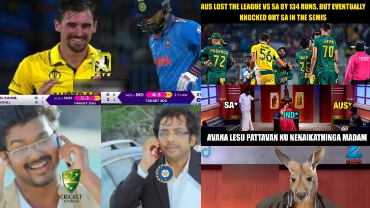 தென்னாப்பிரிக்கா அணிக்கு எதிரான லீக் போட்டியில் ஆஸ்திரேலியா அணி 134 ரன்கள் வித்தியாசத்தில் தோல்வியடைந்தது. ஆனால் அரையிறுதியில் மிரட்டலாக ஆடி வென்றுள்ளது. இதனை சொல்வதெல்லாம் உண்மை நிகழ்ச்சியின் ஒரு எபிசோடில், அவன் லேசு பட்டவனு நினைக்காதீங்க மேடம் என்று ஒருவர் சொல்வார். அதனை ஆஸ்திரேலியா அணியை பார்த்து தென்னாப்பிரிக்கா அணியினர் இந்திய அணியை எச்சரிப்பது போல் உருவாக்கப்பட்டுள்ள மீம் வேற லெவல் மாஸ். அதிலும், மனிதருக்கு பதிலாக கங்காரு முகத்தை மாற்றியது தான் ஹைலைட்.