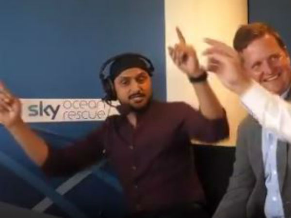 ஸ்கை ஸ்போர்ட்ஸ் நிறுவனம் நேற்று வெளியிட்ட ட்வீட்டில், ஹர்பஜன் உதவியோடு, பிரபலமான இங்கிலாந்து வர்ணனையாளர் டேவிட் பம்பில் லாயிட் பாங்க்ரா நடனம் ஆடினார்" என குறிப்பிட்டு ஒரு வீடியோவை பகிர்ந்தது.