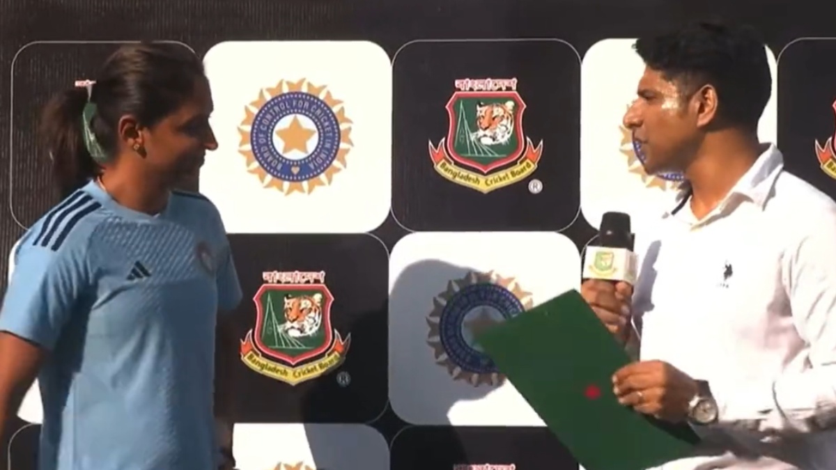 பேட்டிங் மற்றும் பந்துவீச்சில் அசத்திய ஜெமீமா ரோட்ரிக்ஸ் ஆட்டநாயகிக்கான விருதை தட்டிச் சென்றார். அதேபோல் ஜெமீமா ரோட்ரிக்ஸின் ஆட்டம் வங்கதேச ரசிகர்களையும் ஆச்சரியப்படுத்தியது. இதையடுத்து இந்த வெற்றி குறித்து பேசுவதற்காக இந்திய மகளிர் அணி கேப்டம் ஹர்மன்ப்ரீத் கவுர் மேடைக்கு அழைக்கப்பட்டார். பின்னர் வந்த ஹர்மன், ஆட்டம் பற்றிய அவரின் கருத்தை பேசினார்.