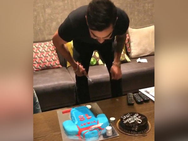 அங்குள்ள இம்பீரியல் ஹோட்டலில் விராட் கோஹ்லி கேக் வெட்டி இன்று தனது பிறந்த நாளை கொண்டாடினார். 18ம் நம்பர் ஜெர்சியை விராட் கோஹ்லி அணிந்திருந்ததை போன்ற பிம்பத்தோடு உருவாக்கப்பட்ட கேக் மற்றும், சாக்லேட் பிளேவரிலான வட்ட வடிவு கேக்குகளை அவர் வெட்டினார்.