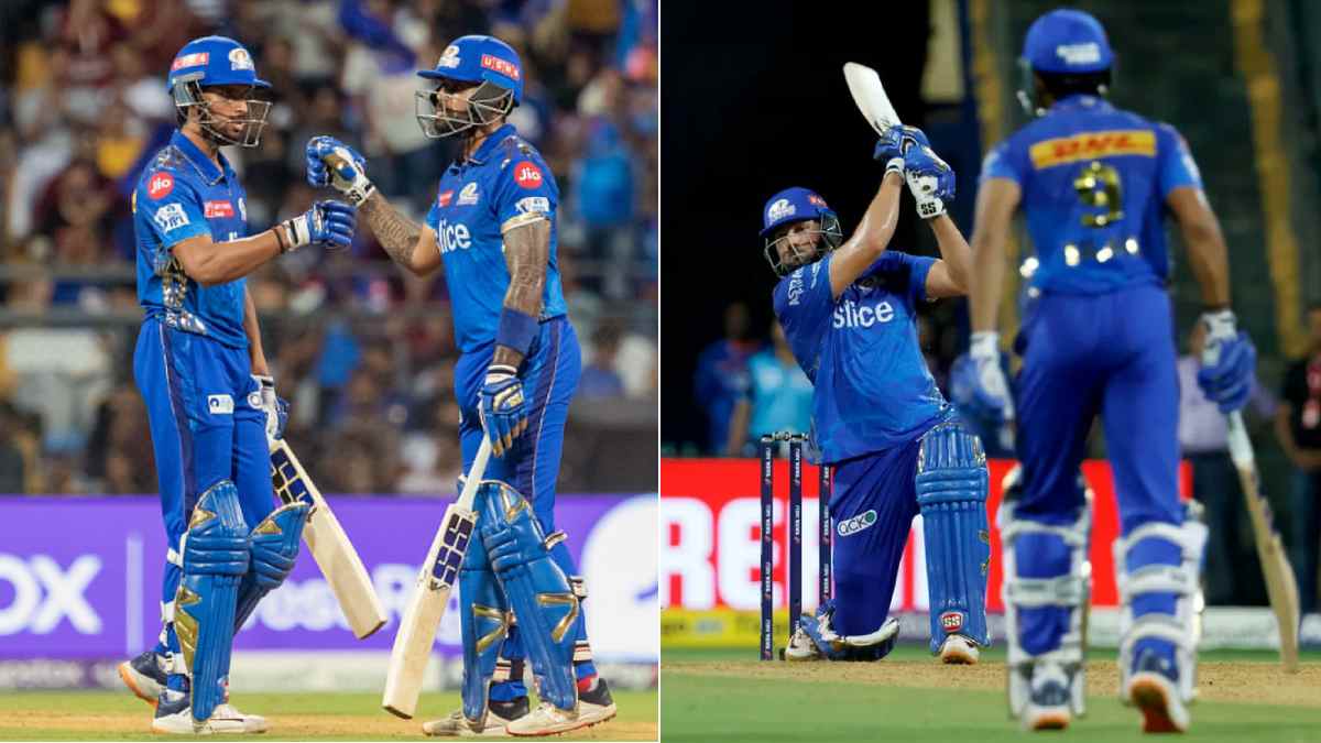 நடப்பு ஐபிஎல் தொடரில் தடுமாறிய சூர்யகுமார் யாதவ், தனது பழைய ஆட்டத்தை வெளிப்படுத்தி ரசிகர்களுக்கு நம்பிக்கை அளித்தார். 29 பந்துகளில் 55 ரன்கள் அடித்தார். எனினும் முக்கிய கட்டத்தில் அவர் ஆட்டமிழக்க ஆட்டத்தில் பரபரப்பு தொற்றி கொண்டது. இதனையடுத்து, திலக் வர்மா, டிம் டேவிட் ஜோடி சேர்ந்து பெரிய ஷாட்களை ஆடினர். இந்த ஜோடி 19வது ஓவரில் 15 ரன்களை கொடுக்க, மும்பை இந்தியன்ஸ் வெற்றிக்கு கடைசி ஓவரில் 17 ரன்கள் தேவைப்பட்டது. இதில் டிம் டேவிட் ஹாட்டிரிக் சிக்சர்களை அடித்து மும்பை அணியின் வெற்றியை உறுதி செய்தார். இதன் மூலம் வான்கடே மைதானத்தில் 200 ரன்களுக்கு மேல் வெற்றிக்கரமாக துரத்திய முதல் அணி என்ற சாதனை படைத்தது.