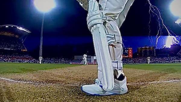 அப்போது டேவிட் மாலன் பந்தை எதிர்கொள்ள காத்திருந்த போது பயங்கர சத்தத்துடன் மைதானம் அருகே இடி விழுந்தது. இதனால் அவர் பந்தை எதிர்கொள்ளாமல் விலகினார். அதிர்ஷ்டவசமாக இதில் ரசிகர்களுக்கும், கிரிக்கெட் வீரர்களுக்கும் எவ்வித காயமும், ஆபத்தும் ஏற்பட வில்லை. இது வீரர்களுக்கு ஆபத்து விளைவிக்கும் என்பதால் ஆட்டம் நிறுத்தப்பட்டது. இடி விழுந்த காட்சி ஸ்டம்பில் பொறுத்தப்பட்டு இருந்த கேமிராவில் பதிவானது. இந்த புகைப்படத்தை ஆஸ்திரேலிய வீரர் டேவிட் வார்னர் வெளியிட்டுள்ளார்.