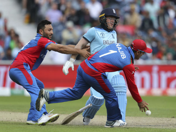 இந்த போட்டியில் 32வது ஓவரில் முக்கியமான சம்பவம் நடந்தது. அந்த ஓவரை ஆப்கானிஸ்தான் வீரர் குல்தீப் நைப் வீசினார். இயான் மோர்கன் அப்போதுதான் களமிறங்கி பேட்டிங் செய்து கொண்டு இருந்தார். அவர் அப்போது வெறும் 1 ரன்தான் எடுத்து இருந்தார். அப்போது நைப் போட்ட பந்து, மோர்கன் பேட்டில் பட்டு பவுன்சாகி கொஞ்ச தூரம் சென்றது .