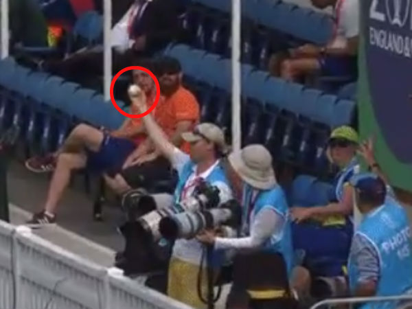 கையில் ஒரு பக்கம் கேமரா இருந்தாலும் இன்னொரு கையால் பந்தை அசால்ட்டாக பிடித்தார் இயான். அதுவும் தனது இடத்தில் இருந்து எந்திரிக்காமல் அமர்ந்து கொண்டே இயான் அந்த பந்தை பிடித்தார். உட்கார்ந்து கொண்டே, மிக சாதாரணமாக எளிதாக அந்த கேட்சை பிடித்தார்.