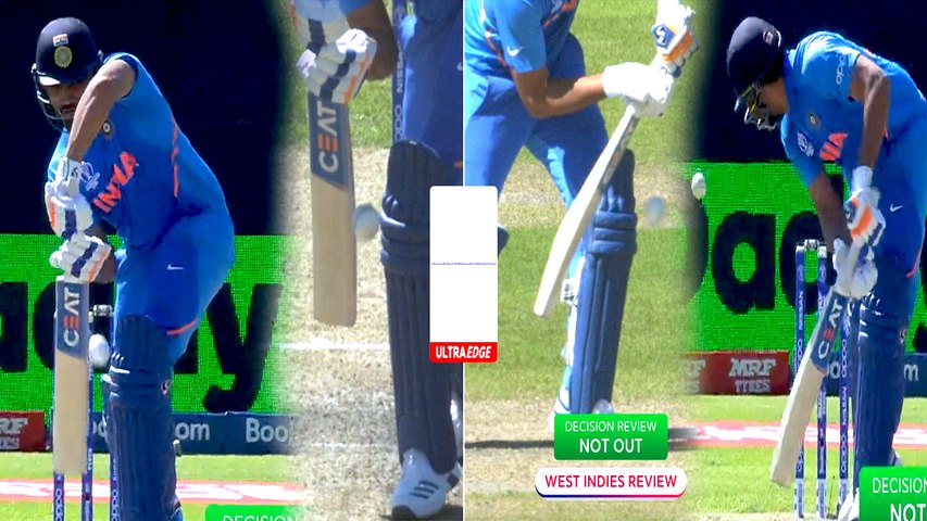 அப்போது ரோச் போட்ட பந்து ரோஹித்தின் காலுக்கும் பேட்டிற்கும் இடையில் சென்றது. இதற்கு ரோச் அவுட் கேட்டார். ஆனால் நடுவர் விக்கெட் கொடுக்கவில்லை. இதனால் மேற்கு இந்திய தீவுகள் ரிவ்யூ கேட்டது. பந்து சரியாக பேட்டிற்கும் காலிற்கும் இடையில் சென்றது. அதே சமயம் பேட் மற்றும் கால் இரண்டுக்கும் இடையில் பந்து செல்லும் போதும் அதிர்வு ஏற்பட்டது. மூன்றாவது நடுவர் ரோஹித்திற்கு விக்கெட் கொடுத்தார்.