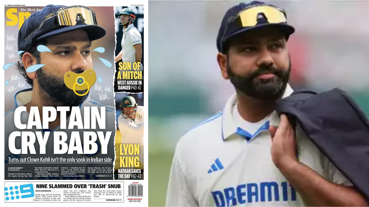 மெல்போர்ன்: விராட் கோலி Clown Kohli என்று விமர்சித்து ஜோக்கராக அவமானப்படுத்திய தி வெஸ்ட் ஆஸ்திரேலியா பத்திரிகை, இம்முறை இந்திய அணியின் கேப்டன் ரோஹித் சர்மா பக்கம் திரும்பியுள்ளது. அவரை "Captain Cry Baby" என்று கூறியதோடு, குழந்தையின் வாயில் வைக்கப்படும் நிப்பிலை ரோஹித் சர்மாவின் வாயில் வைத்து அவமானப்படுத்தியுள்ளது.
