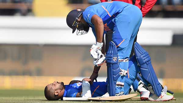 ஷிகர் தவான் பேட்டிங் செய்த போது உடலில் பந்தால் தாக்கப்பட்டு காயமடைந்தார். அவர் இந்திய அணியின் பந்துவீச்சின் போது முழுவதுமாக பீல்டிங் செய்ய வரவில்லை.