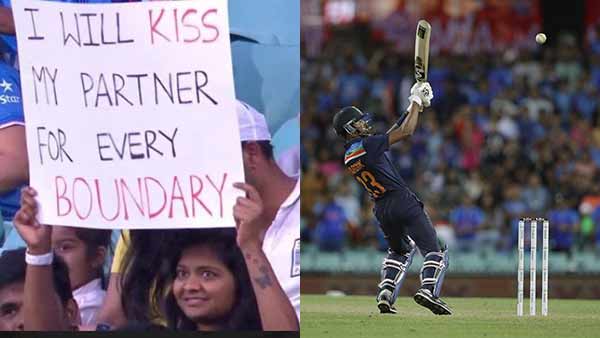அந்த பதாகையில் "ஒவ்வொரு பவுண்டரிக்கும் என் பார்ட்னரை நான் கிஸ் செய்வேன்" என எழுதப்பட்டு இருந்தது. மைதானத்தில் இருந்த பலரும் அதைக் கண்டு சிரிக்கத் துவங்கினர். அப்போதே இணையத்தில் அந்த புகைப்படம் வைரல் ஆனது.