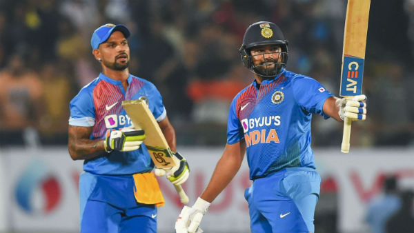 154 என்ற வெற்றி இலக்கை நோக்கி ஆடிய இந்திய அணிக்கு ரோஹித் - தவான் ஜோடி அதிரடி துவக்கம் அளித்தது. தவான் எப்போதும் போல ஒரு பந்துக்கு ஒரு ரன் என்ற விகிதத்தில் ஆட, மறுபுறம் ரோஹித் சர்மா வெளுத்துக் கட்டினார்.