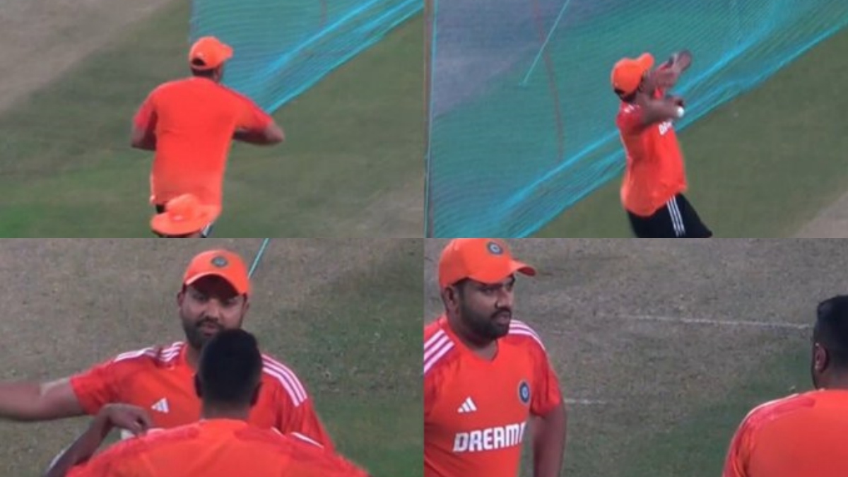 ஜடேஜா பேட்டிங் பயிற்சி மேற்கொண்ட நிலையில், அவருக்கு ரோகித் சர்மா மற்றும் அஸ்வின் இருவரும் இணைந்து ஆஃப் ஸ்பின் வீசி பயிற்சி மேற்கொண்டனர். அப்போது ரோகித் சர்மா சில பந்துகளை வீசிவிட்டு, அஸ்வினுடன் ஆலோசனையில் ஈடுபட்டார். கடந்த சில வாரங்களாகவே ரோகித் சர்மா பவுலிங் பயிற்சியில் ஈடுபடவில்லை.