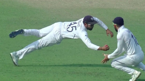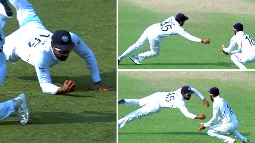 கடந்த டெஸ்ட் போட்டியில் எளிதான ஸ்லிப் கேட்ச் ஒன்றை தவறவிட்ட ரோஹித்ட், இந்த முறை கோலிக்கு வந்த கேட்ச்சை தாவிப் பிடித்து மிரட்டி இருக்கிறார். இந்தப் போட்டியில், வங்கதேசம் முதல் இன்னிங்க்ஸில் 106 ரன்களுக்கு ஆல் - அவுட் ஆனது.
