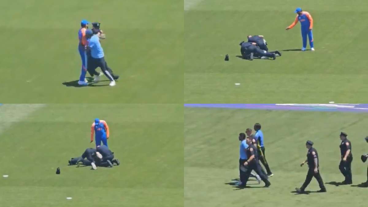 ஆனால், அமெரிக்காவில் சட்டங்கள் கடுமையாக உள்ளன. இந்த நிலையில், ரோஹித் சர்மா ரசிகர் அத்துமீறி நுழைந்தார். அவர் உள்ளே வந்ததை பார்த்ததும் ஐந்து அமெரிக்க காவலர்கள் மைதானத்திற்குள் ஓடி வந்தனர். அதில் இருவர் அந்த ரசிகர் மீது பாய்ந்தனர். அவரை தரையில் சாய்த்து, அவர் மீது அமர்ந்தனர், அவரது இரண்டு கைகளையும் பின்புறமாக மடக்கினர். பின்பு அவரை தரையோடு இருக்குமாறு எச்சரித்தனர். அவர் லேசாக அசைந்ததால் அவர் மீது முழு எடையையும் கொடுத்து அழுத்தம் கொடுத்தனர். இந்த காட்சிகள் அனைவருக்கும் பதைபதைப்பை ஏற்படுத்தியது.