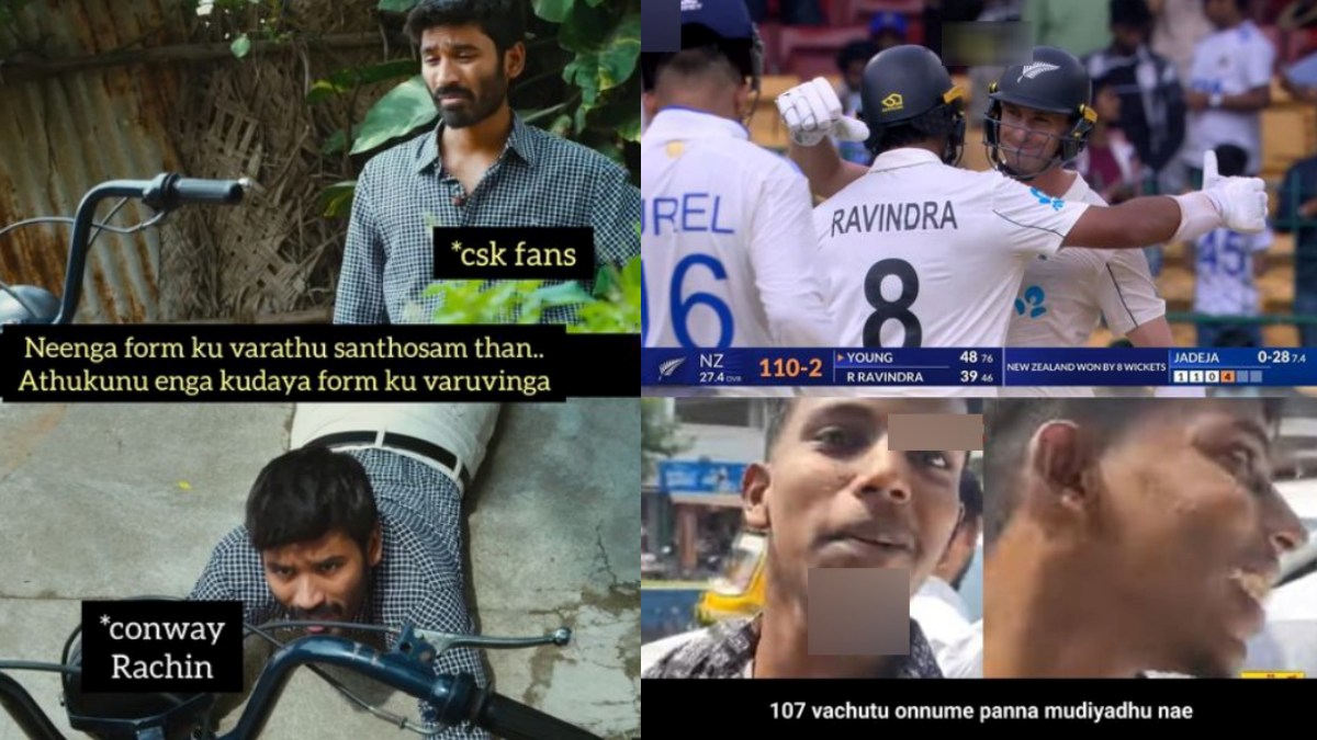 பெங்களூர்: நியூசிலாந்து அணிக்கு எதிரான முதல் டெஸ்ட் போட்டியில் இந்திய அணி 8 விக்கெட்டுகள் வித்தியாசத்தில் தோல்வியடைந்திருக்கிறது. இந்தப் போட்டியில் நடந்த சுவாரஸ்யமான விஷயங்களை வைத்து ரசிகர்கள் சோசியல் மீடியாவில் உருவாக்கியுள்ள ஜாலியான மீம்ஸை பார்க்கலாம்.