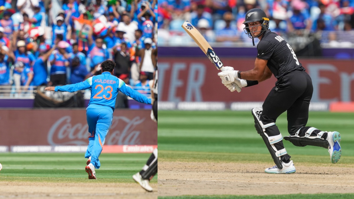 குல்தீப் யாதவ் வீசிய முதல் பந்திலேயே ரச்சின் ரவீந்திரா 29 பந்துகளில் 37 ரன்கள் எடுத்து போல்டாகி வெளியேறினார். குல்தீப் யாதவ் வீசிய கூக்ளி பந்தை கணிக்காமல் ரச்சின் ரவீந்திரா ஷாட் ஆடியதே அவரின் தவறாக மாறியது. இதனால் நியூசிலாந்து அணி இரு தொடக்க வீரர்களையும் இழந்து தடுமாறி வருகிறது.