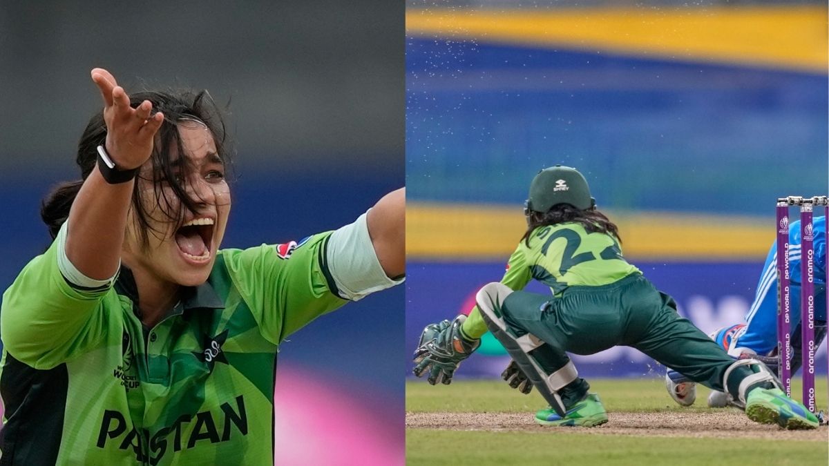 கடைசி நேரத்தில், இரண்டு பேரும் லேசாக மோதிக்கொண்டனர். விக்கெட் கீப்பர் நவாஸின் கையுறையில் பட்டு, அந்தச் சுலபமான கேட்ச் கீழே விழுந்தது. இந்த குழப்பத்தைப் பயன்படுத்திக் கொண்ட இந்திய வீராங்கனைகள் ஒரு சிங்கிள் ஓடினர்.