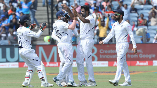 இந்தப் போட்டியில் இந்தியா முதலில் டாஸ் வென்று பேட்டிங் செய்தது. கோலி 254*, மயங்க் அகர்வால் 108, ஜடேஜா 91, ரஹானே 59, புஜாரா 58 ரன்கள் குவித்தனர்.