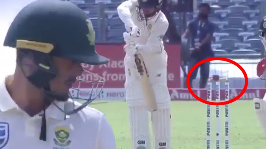 மேலும், ஸ்டம்ப் தகர்ந்து கிடந்ததை நம்ப முடியாமல் அதிர்ச்சியில் நின்று கொண்டிருந்தார். ஒருவேளை விக்கெட் கீப்பர் சாஹா பெயில்சை தட்டி விட்டிருக்கலாம் என நினைத்தாரோ, என்னவோ அவுட் ஆகி விட்டோம் என அவர் நம்பவில்லை.