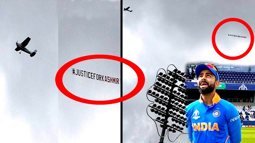உலகக்கோப்பை தொடரில் இந்திய அணி தன் கடைசி லீக் போட்டியில் இலங்கை அணியை சந்தித்தது. இந்தப் போட்டியின் துவக்கத்தில், வானில் விமானம் ஒன்று சென்றது. அதன் பின்னே "காஷ்மீருக்கு நீதி வேண்டும்" என்று எழுதப்பட்ட வாசகம் பறக்கவிடப்பட்டு இருந்தது.