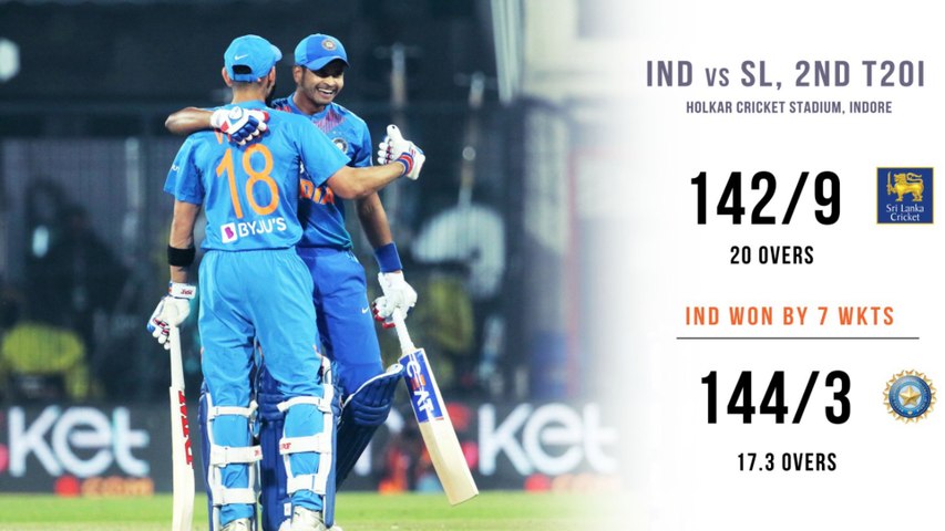 20 ஓவர்கள் முடிவில் 9 விக்கெட்கள் இழந்து 142 ரன்கள் மட்டுமே எடுத்தது இலங்கை அணி. இந்தூர் ஆடுகளத்தில் இது குறைவான ஸ்கோர் தான். அந்த ஆடுகளத்தில் 170க்கும் மேல் அடித்தால் தான் வெற்றி பெற முடியும் என்ற நிலை இருந்தது.