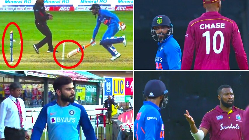 முதலில் அம்பயர் அவுட் பற்றி எதுவும் கூறவில்லை. பின்னர், அம்பயர் அருகே சென்ற சேஸ் இது அவுட்டா? எனக் கேட்டார். அம்பயர் இல்லை என மறுத்து விட்டார். பொதுவாக இது போன்ற நேரடி ரன் அவுட்களுக்கு மூன்றாவது அம்பயர் உதவியை அம்பயர்கள் நாடுவது வழக்கம்.
