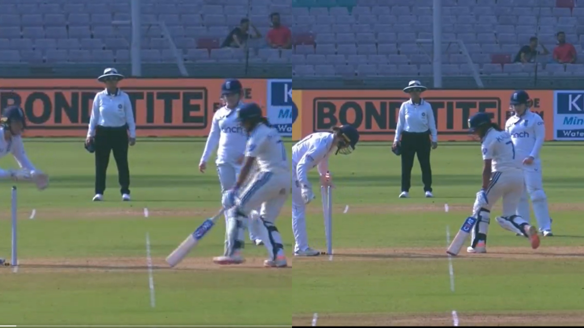 மும்பை : இங்கிலாந்து மகளிர் அணிக்கு எதிரான முதல் டெஸ்ட் போட்டியில் இந்திய மகளிர் அணி கேப்டன் ஹர்மன்பிரித் கவுர் ஆட்டம் இழந்த விதம் பெரும் சர்ச்சையை ஏற்படுத்தி இருக்கிறது. மும்பை டீஒய் பாட்டில் மைதானத்தில் நடைபெற்ற இந்த நான்கு நாட்கள் போட்டியில் டாஸ் வென்ற இந்திய அணி கேப்டன் ஹர்மன்பிரித் முதலில் பேட்டிங்கை தேர்வு செய்தார்.