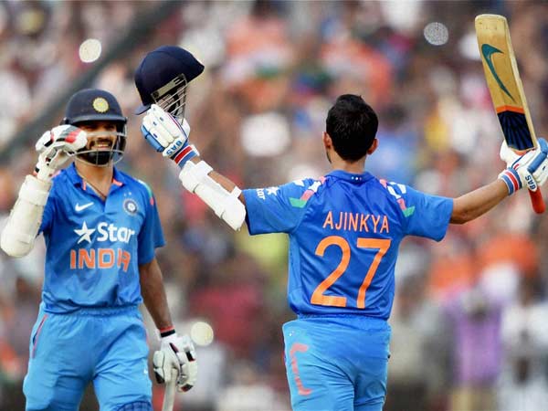 இலங்கை பந்துவீச்சை நாலா புறமும் விளாசித் தள்ளிய இவர்கள் இருவரும் நூறு ஓட்டங்களை கடந்தனர். ரகானே 111 ஓட்டங்களிலும், தவான் 113 ஓட்டங்களிலும் ஆட்டமிழக்க, அடுத்து வந்த சுரேஷ் ரெய்னா 34 பந்தில் 52 ஓட்டக்களை குவித்து ஆட்டமிழந்தார்.