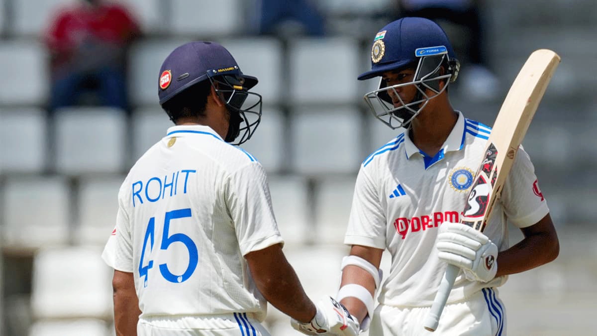 முதல் ஓவரிலேயே ஜெய்ஸ்வால் சிக்சரும், பவுண்டரியும் விளாசி அசத்த, பின்னர் முழுக்க முழுக்க ஆட்டத்தை ரோகித் சர்மா கையில் எடுத்துக் கொண்டார். ஒவ்வொரு ஓவருக்கு சிக்சரும், பவுண்டரியும் பறந்துகொண்டே இருந்தது. இதன் மூலம் 5.3 ஓவர்களில் இந்திய அணி 50 ரன்களை எட்டியது. அதேபோல் டெஸ்ட் வரலாற்றில் இந்திய அணி தரப்பில் அதிவிரைவாக 50 ரன்கள் விளாசி சாதனை படைக்கப்பட்டது.