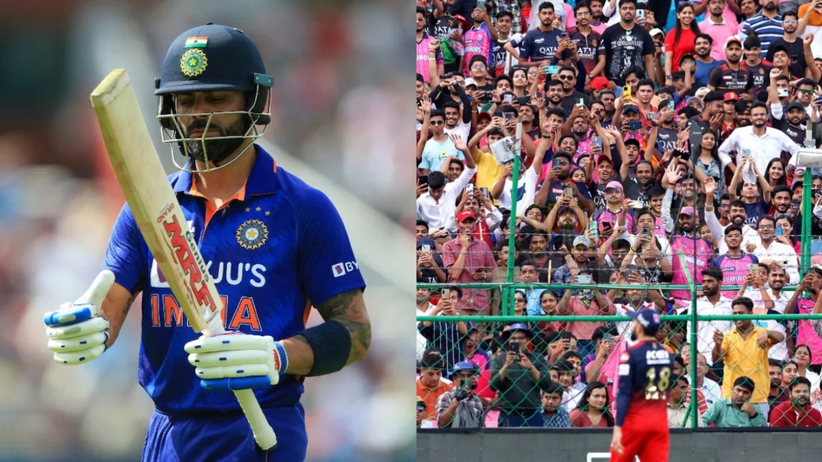 இதனை ரசிகர்கள் கொஞ்சம் கூட எதிர்பார்க்கவில்லை. கோலி வரும்போது மைதானத்தில் இருந்த அனைத்து ரசிகர்களும் எழுந்து நின்ற உற்சாகமாக குரல் கொடுக்க அடுத்த நொடியே சர்வ அமைதியாக மைதானம் மாறியது. இந்த நிலையில் ரோகித் சர்மா ரசிகர்களுக்கு மட்டும் இது சந்தோஷமாக அமைந்தது. ஏனென்றால் ரோகித் சர்மா இரண்டு முறை டக் அவுட் ஆன பிறகு கோலி ரசிகர்கள் அவரை கிண்டல் செய்ய தொடங்கினர்.